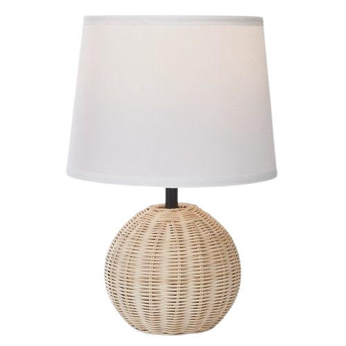 Rattan Base with White Fabric Shade